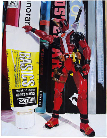 The predominant feature of toys, in particular action figures, as the main subject matter within his work lends its importance to a time in the artist's life when he was younger, and life was simpler – something he tries to recreate for a number of reasons. This uses forms of escapism both as a child, as he spent many a day adventuring in a world without limit, complexities, expectations and abrupt endings and also observed whilst watching his own children as they laugh and play with their own toys perceivably enjoying the same excitements and wonders as the artist did too.
