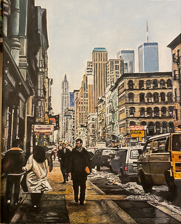 Matthew's New York retro style paintings are dedicated to urban life in and around New York City (and the US in general) at the time he was born in the 1970s and growing up in the 80s and early 90s.